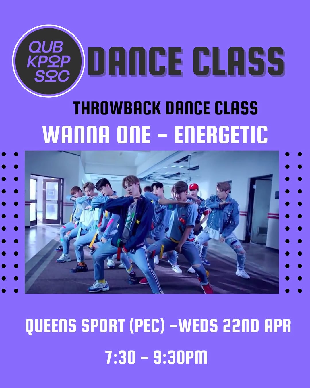 Get ready to throw it back with the QUB KPOP SOCIETY! Join us for an exciting throwback dance class where you will learn the choreography for Wanna One’s iconic debut song, "Energetic." This session will be led by instructor @jangulayy, offering a fantastic opportunity to master the moves of one of K-Pop's most legendary tracks.