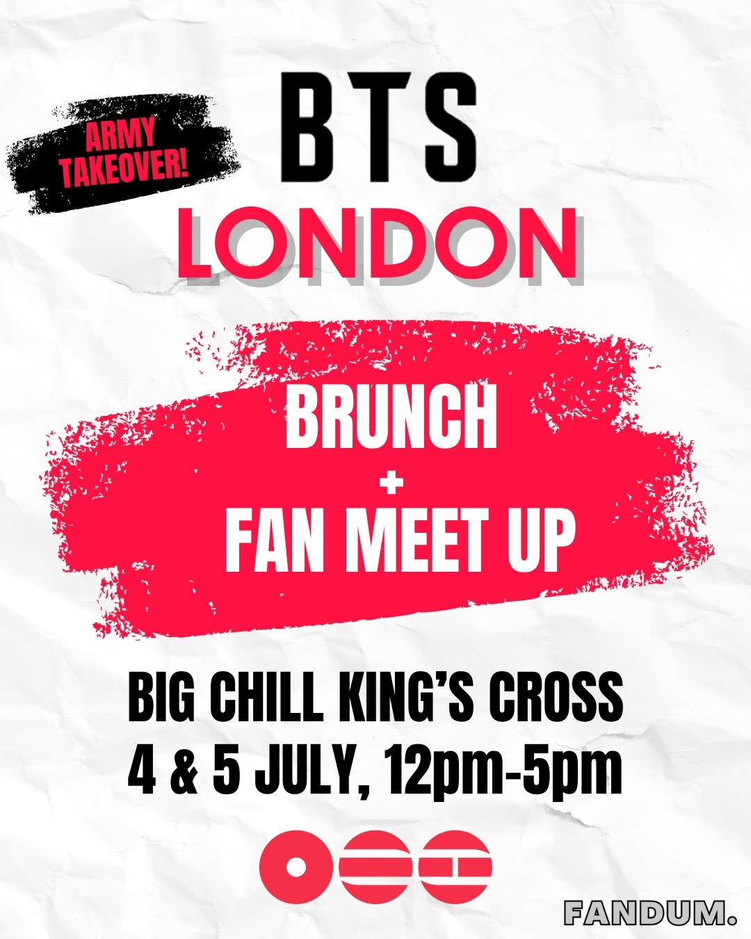 Join us for an unforgettable BTS themed Brunch and Fan Meet Up! Celebrate the excitement of BTS coming to London with fellow ARMY members at Big Chill King's Cross. This is the perfect opportunity to make new friends and reconnect with old ones before the boys headline Tottenham Stadium!