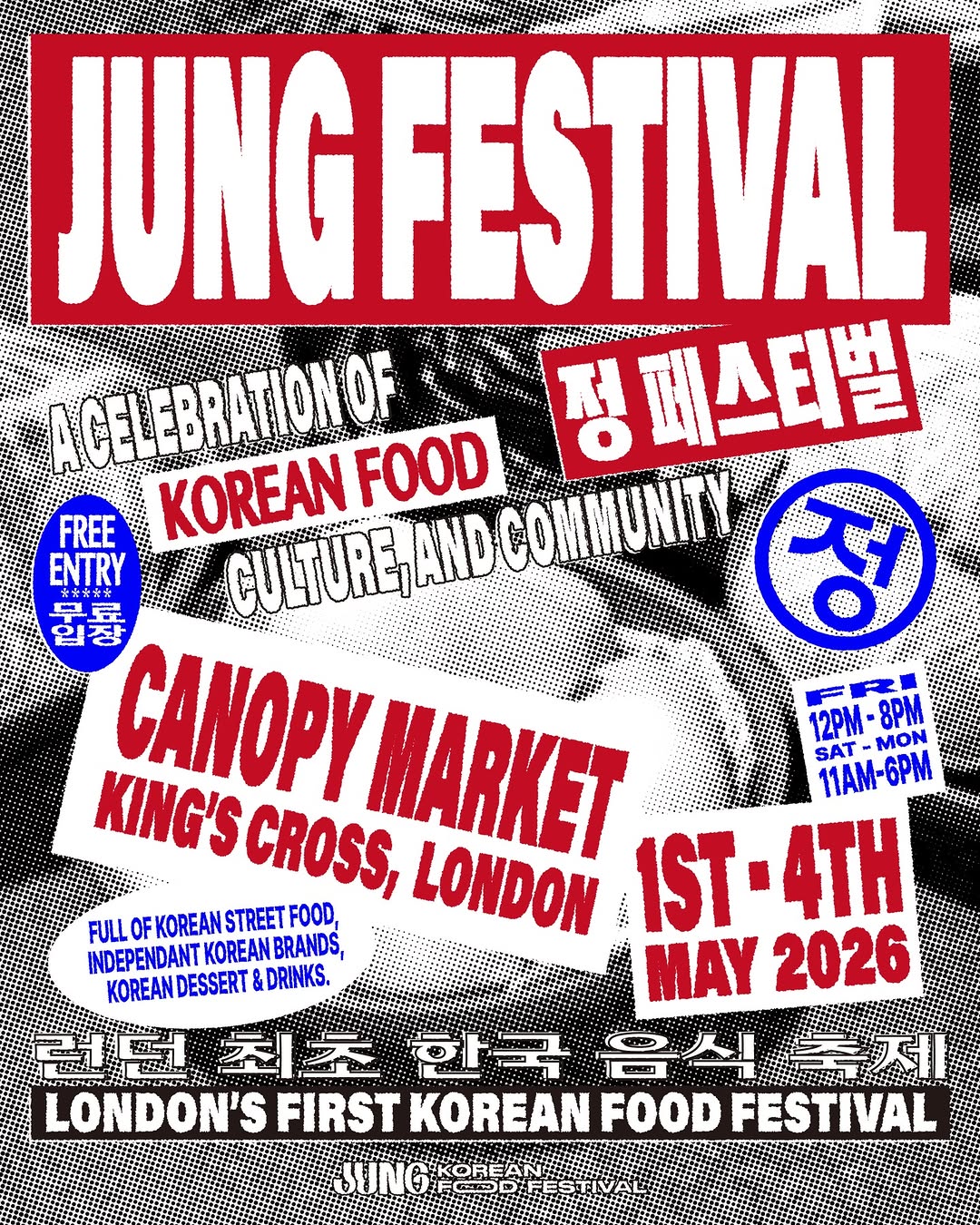 Experience a curated selection of Korean dishes inspired by the vibrant atmosphere of traditional markets. This event brings the authentic experience of how Koreans eat at local markets directly to the city, offering a unique opportunity to immerse yourself in the heart of Korean culinary traditions. As London’s first Korean food festival, it serves as a premier destination for anyone looking to explore the depth of Korean flavors and community spirit.