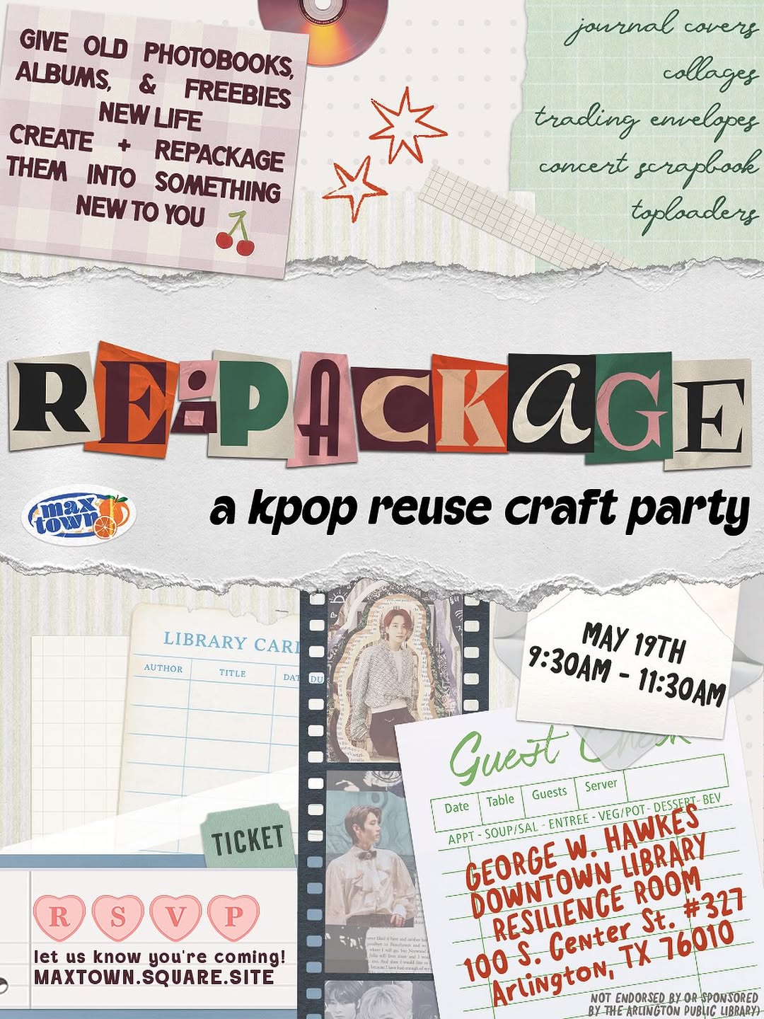 Give your old photobooks, duplicates, and stray freebies a well-deserved comeback! Join maxtown (formerly kpop.toyou) for a crafty morning dedicated to upcycling your K-Pop collection. This event is designed to help fans create and repackage their old albums and items into something brand new to them.