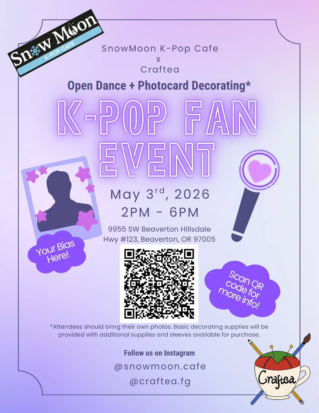 Get ready for an exciting collaboration as SnowMoon K-Pop Cafe teams up with @craftea.fg for a special fan gathering. This event is designed for the local K-Pop community to come together for a few fun hours of crafting, music, and movement. Whether you are looking to show off your dance moves or get creative with your collection, there is something for every fan to enjoy.