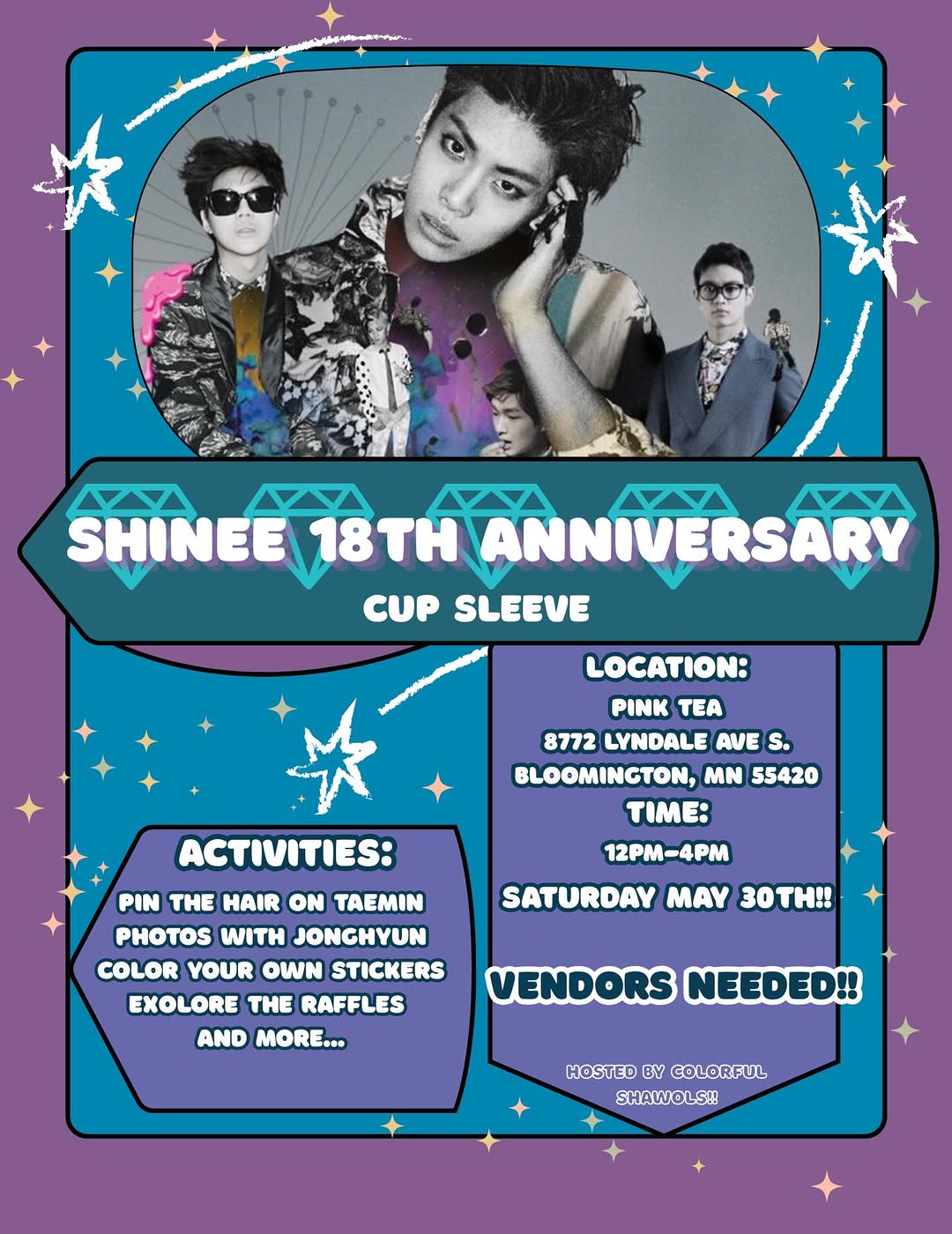 Join Colorful Shawols for a special anniversary celebration dedicated to SHINee! This gathering is the perfect opportunity to connect with fellow Shawols and honor the group's incredible 18-year journey. The organizers are currently working on a curated selection of drinks specifically for the occasion, ensuring a sweet way to toast to this milestone achievement.