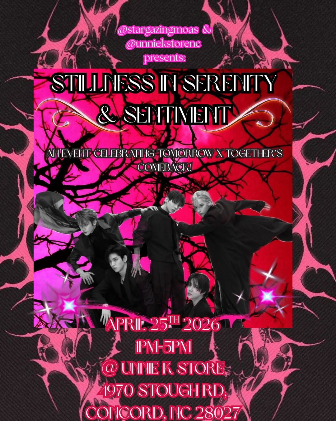 Join us for a magical experience as we celebrate TOMORROW X TOGETHER’s comeback with “Stillness In Serenity & Sentiment.” This event is designed for all MOA to let go of their anxieties and embrace their inner strength while stargazing together.