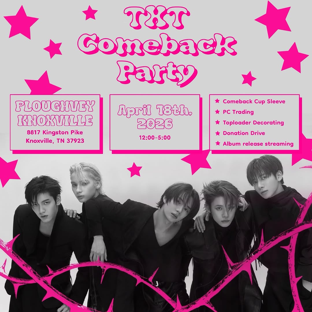 Calling all Tennessee MOA! Join the Lucky Ducks for an exciting gathering to celebrate the latest TXT comeback. This event is designed to bring the community together to share in the excitement of new music and support the members as a group. Whether you have been a fan since debut or are a new listener, come out to connect with fellow fans and enjoy the comeback atmosphere.