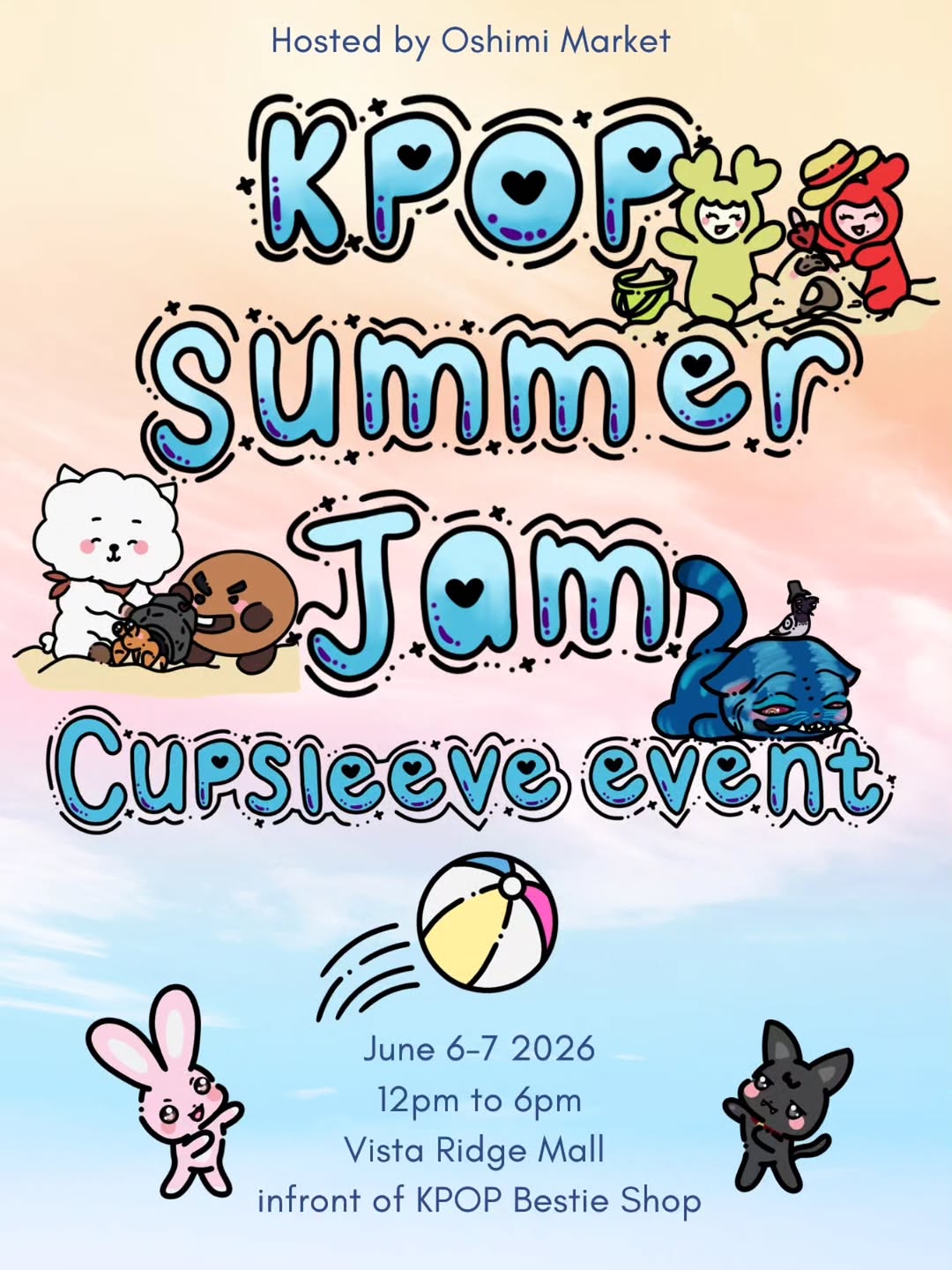 The event will showcase a variety of vendors offering unique merchandise. For creators interested in participating, artist applications will be opening soon, so stay tuned for further updates. The vibrant aesthetic of the event and its promotional flyer were designed by the artist @stationerycharms, featuring a fun "summer jam" theme with beach-ready characters.