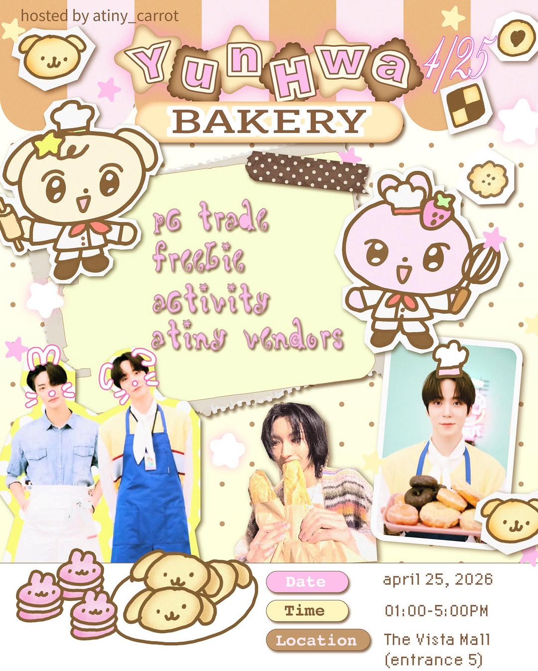 Step into a world of treats and idols at the YunHwa Bakery pop-up event! Organized by Atiny Carrot, this special birthday celebration honors Yunho and Seonghwa with a charming bakery-themed experience. Whether you are looking to grow your collection or just want to enjoy the aesthetic atmosphere, this event brings fans together for a day filled with bread, pies, and plenty of memories.