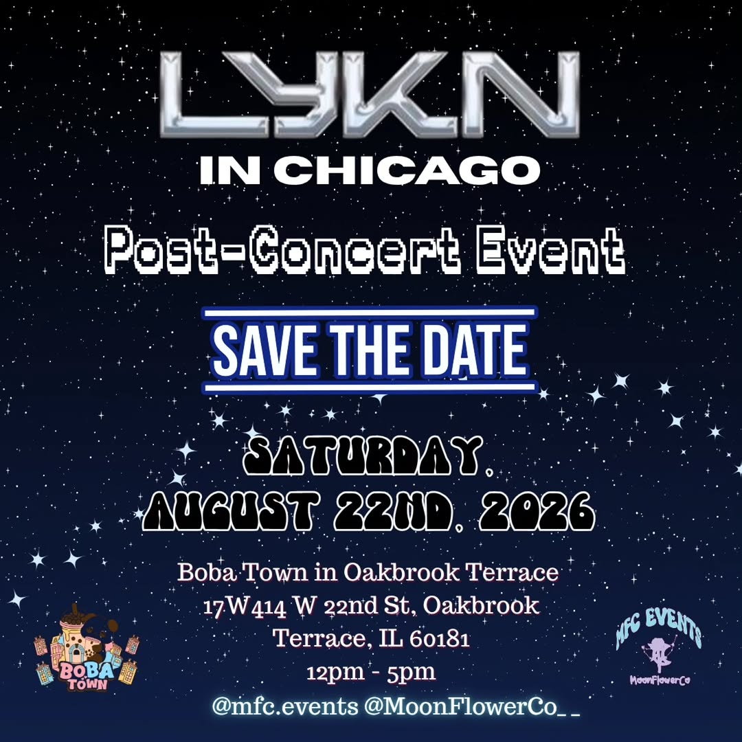 Get ready to celebrate LYKN’s very first concert in Chicago! MoonFlowerCo Events is hosting a post-concert celebration to commemorate this major milestone. This is a special opportunity for the fandom to come together, share their excitement, and keep the energy going after the group's debut performance in the city.