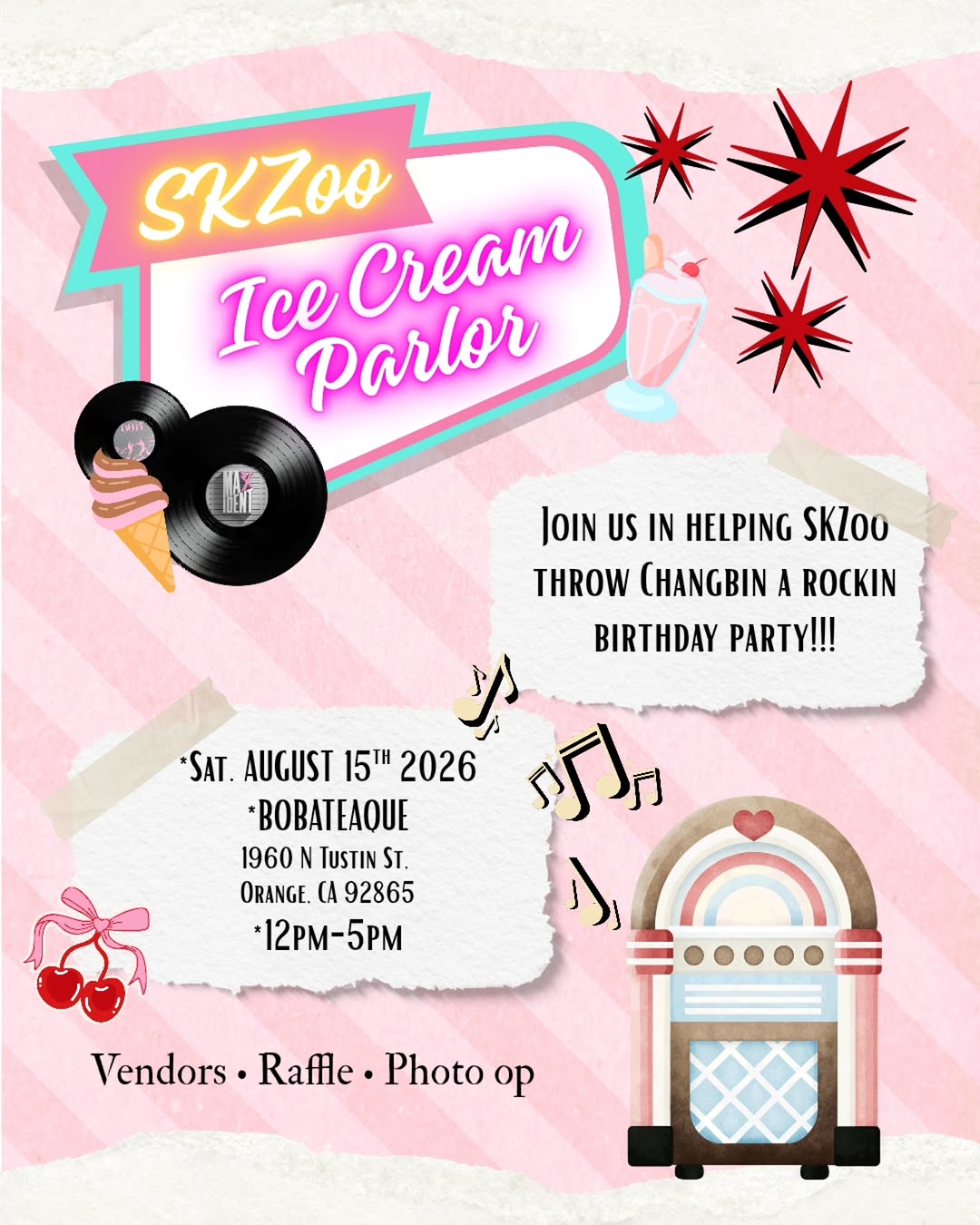STAYS, everyone stay calm because it is finally happening! Join Stay Events🌹 for a special cupsleeve event dedicated to Stray Kids. We are calling on all fans to help the SKZOO characters throw Changbin a rockin' birthday party. This ice cream parlor-themed celebration is the perfect way to honor him with the community.