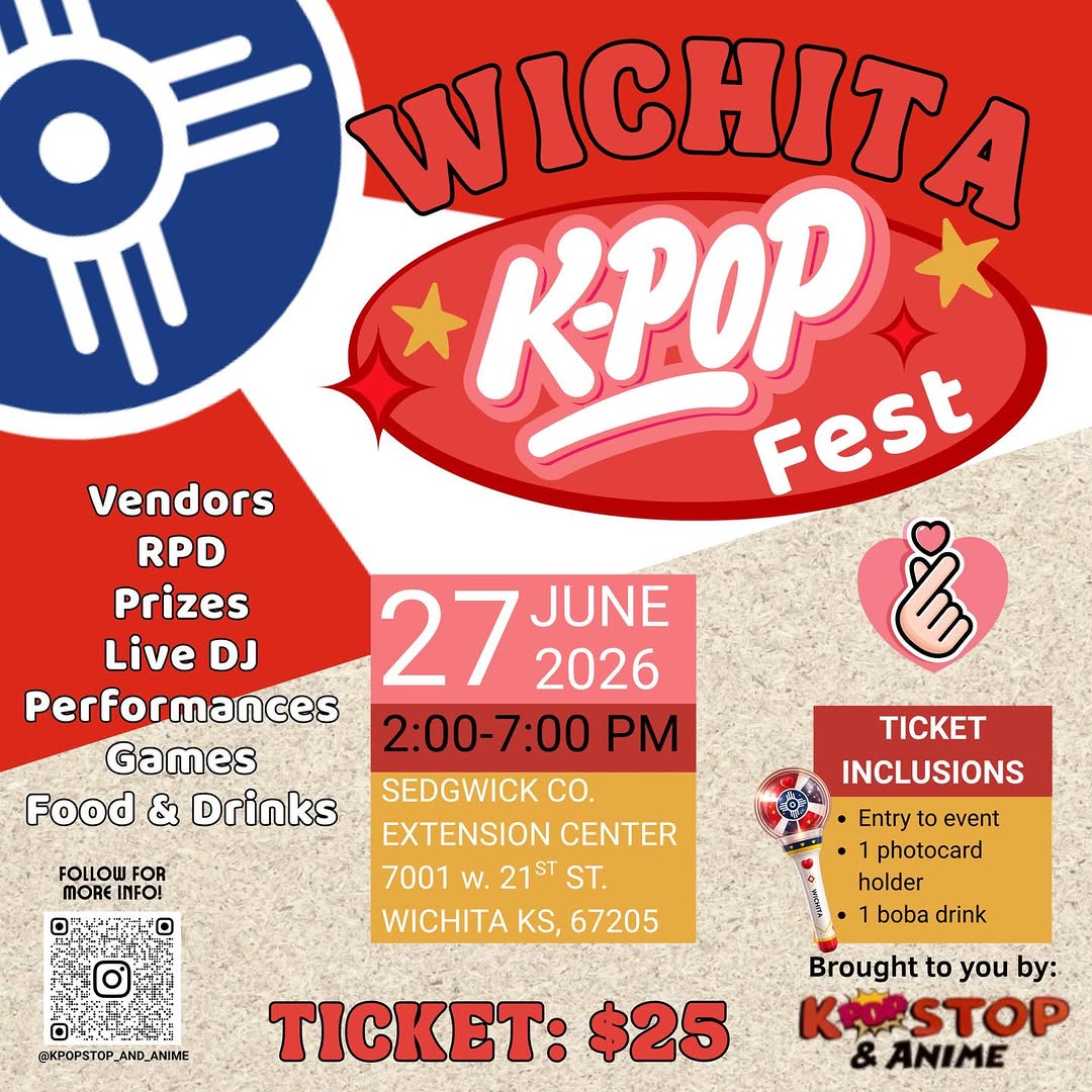 Kpop Stop and Anime is proud to announce the very first K-pop festival in the Wichita area! This landmark five-hour event is designed to celebrate all genres of K-pop, bringing together fans from every generation and background. Join us for a day of music and culture as we unite the community through a shared love of K-pop.